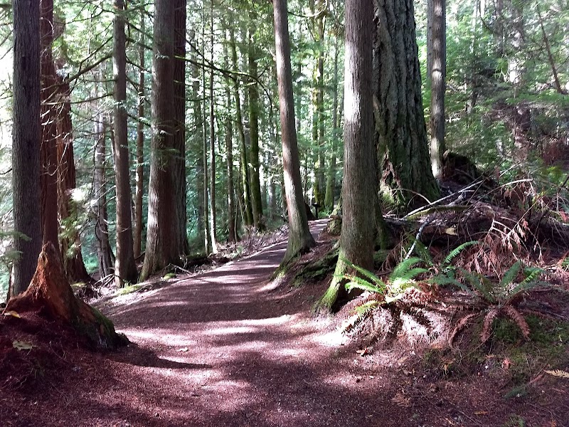 Well managed trails in a second growth forest. The main loop trail is 2.8 easy miles. If you need more of a hike, you could try the several spur trails. Huge bonus: No dogs are permitted on the trails. A few cool benches will help you rest. Mushrooms abound. Vault toilets at the trailhead. Take a photo of the map with your phone. Help keep the forest looking perfect by picking up trash.