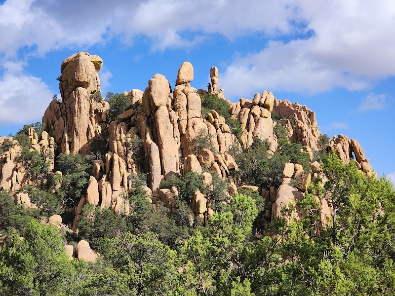 From Tucson, take I-10 east to Exit 331 for Dragoon Road. Follow Dragoon Road south for 12 miles, then turn onto Cochise Stronghold Road. The campground is about 4 miles in, surrounded by striking granite spires.