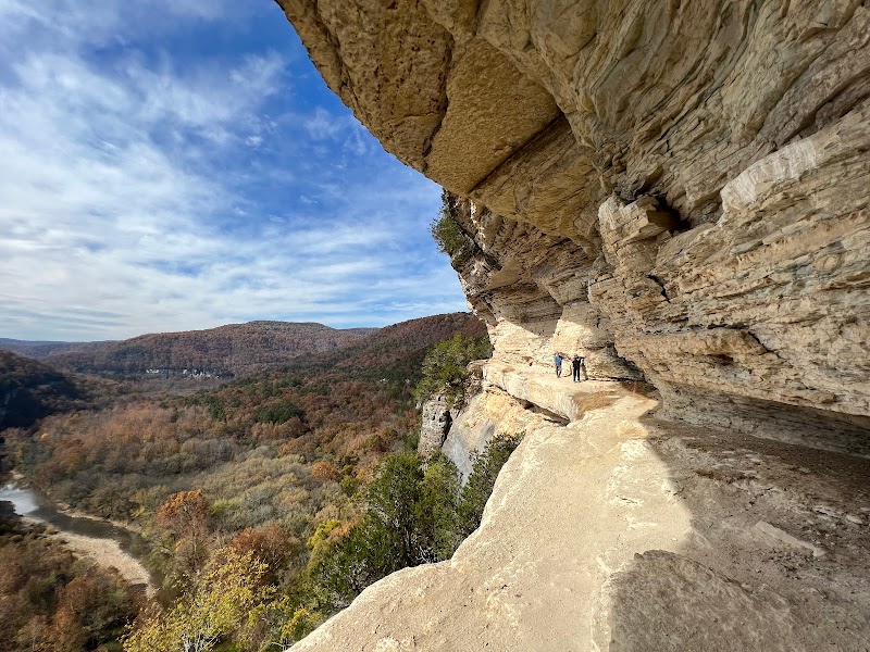 Big Bluff’s Unique Features: Big Bluff is famed for its Goat Trail, a ledge with dramatic drop-offs offering breathtaking, panoramic views of the Buffalo River valley below. It’s a rare opportunity to experience the area's limestone bluffs up close. The ledge is about four feet wide in places, so caution is advised, especially for those sensitive to heights.