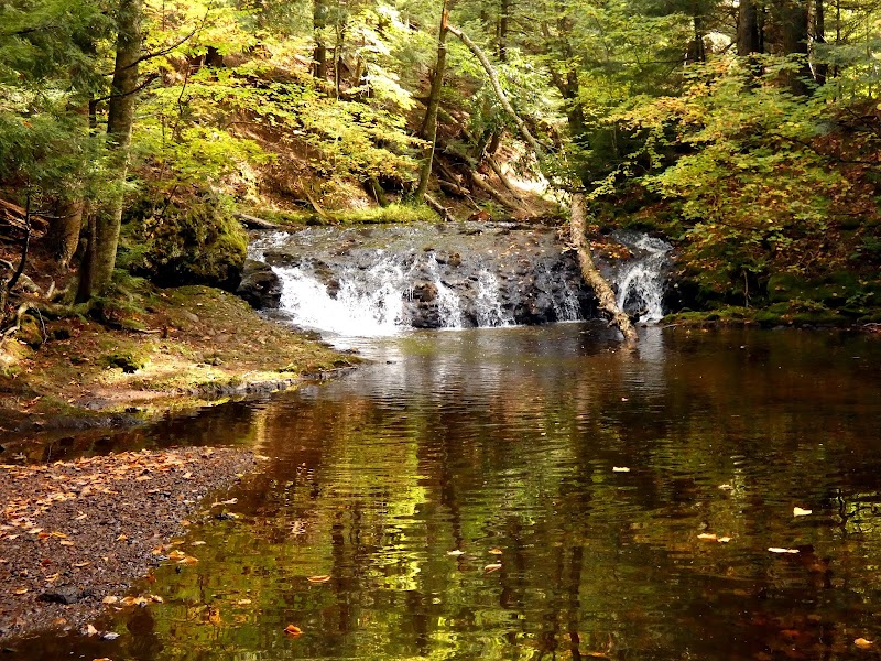 Unlike more frequented waterfalls in the Porcupine Mountains, Overlooked Falls truly lives up to its name. It offers a private, peaceful setting where visitors can pause, listen to the flowing water, and take in the surrounding forest. Autumn is particularly striking, as the rich red and gold leaves beautifully frame the falls. The interpretive plaques along the trail also share information about the area's logging history and geology, enriching the experience.