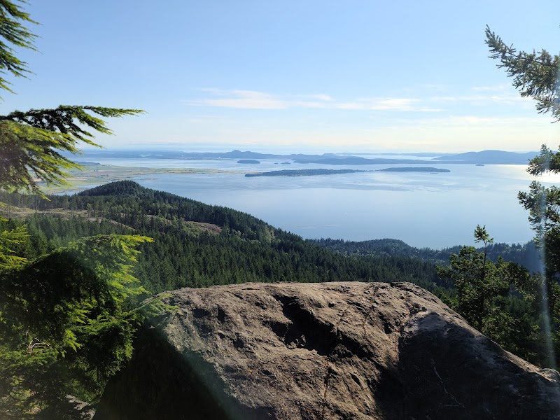 Halfway up, the Samish Overlook offers a breather. Pause here to drink in the view: a sprawling patchwork of farmland stretching to the shimmering waters of Samish Bay. But don't linger too long; the real prize awaits higher still.