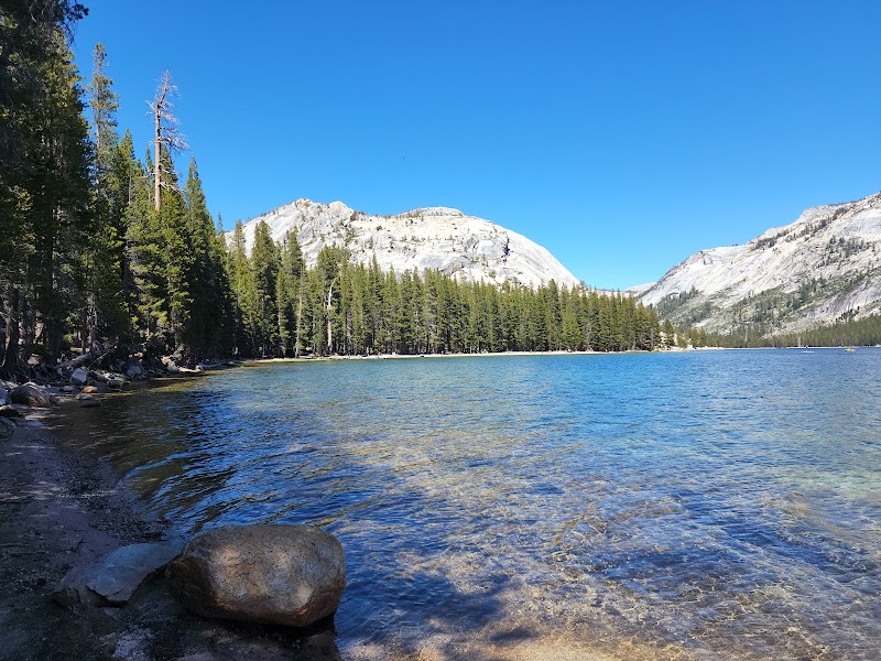 A beautiful, calm lake with crystal clear water, Tenaya Lake is located between Yosemite Valley and Tuolumne Meadows. It was formed by the Tuolumne Glacier and lies at an elevation of 2484m (8150 ft.) above sea level. Tenaya Lake is easily accessible by State Route 120 (Tioga Pass Road) and is a popular lake for both water activities and swimming. While driving from Yosemite Valley to Lee Vining, we stopped at this lake and went for a refreshing swim on the eastern beach which is accessible from the picnic area and parking lot. The view of the surrounding mountains is spectacular and swimming in the lake is a unique experience!