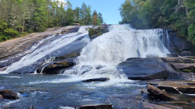 High Falls in DuPont Forest is a beautiful spot. We visited it as part of the High Falls Loop trail when we explored Triple Falls. The hike was easy, with lovely scenery and picturesque views along the way. And then, the highlight: the serene High Falls itself. The waterfall is a sight to behold, cascading down a rocky slope with gentle power and beauty. We enjoyed our walk there.